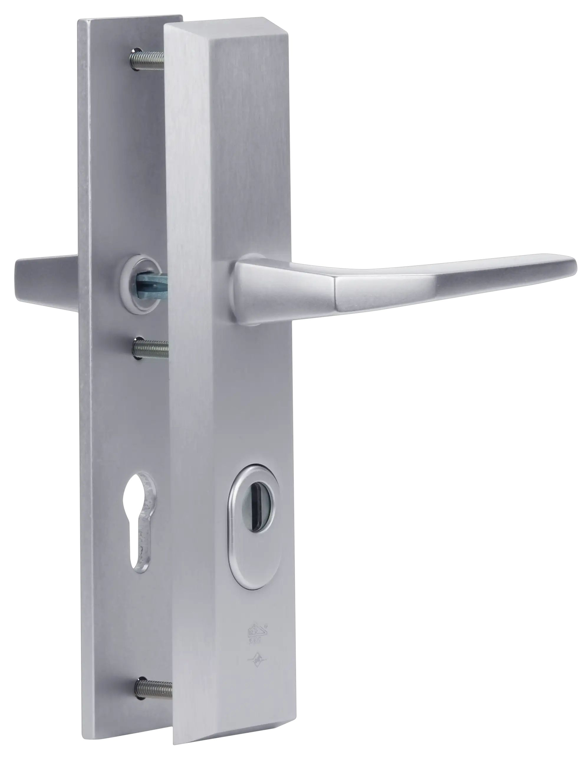 De Dieckmann serie Alpha is een veiligheidsgarnituur van massief aluminium volgens de DIN 18257, NEN 5089 met keurmerk SKG***®. Buitenzijde met cilinder-kerntrekbeveiliging, met deurkruk of vaste greep/knop en stalen nokken Ø10 met gehard stalen plaatjes. Binnenzijde met deurkruk gatdeel en zichtbare bevestiging met 3 x M6 bouten incl. 8mm stift.