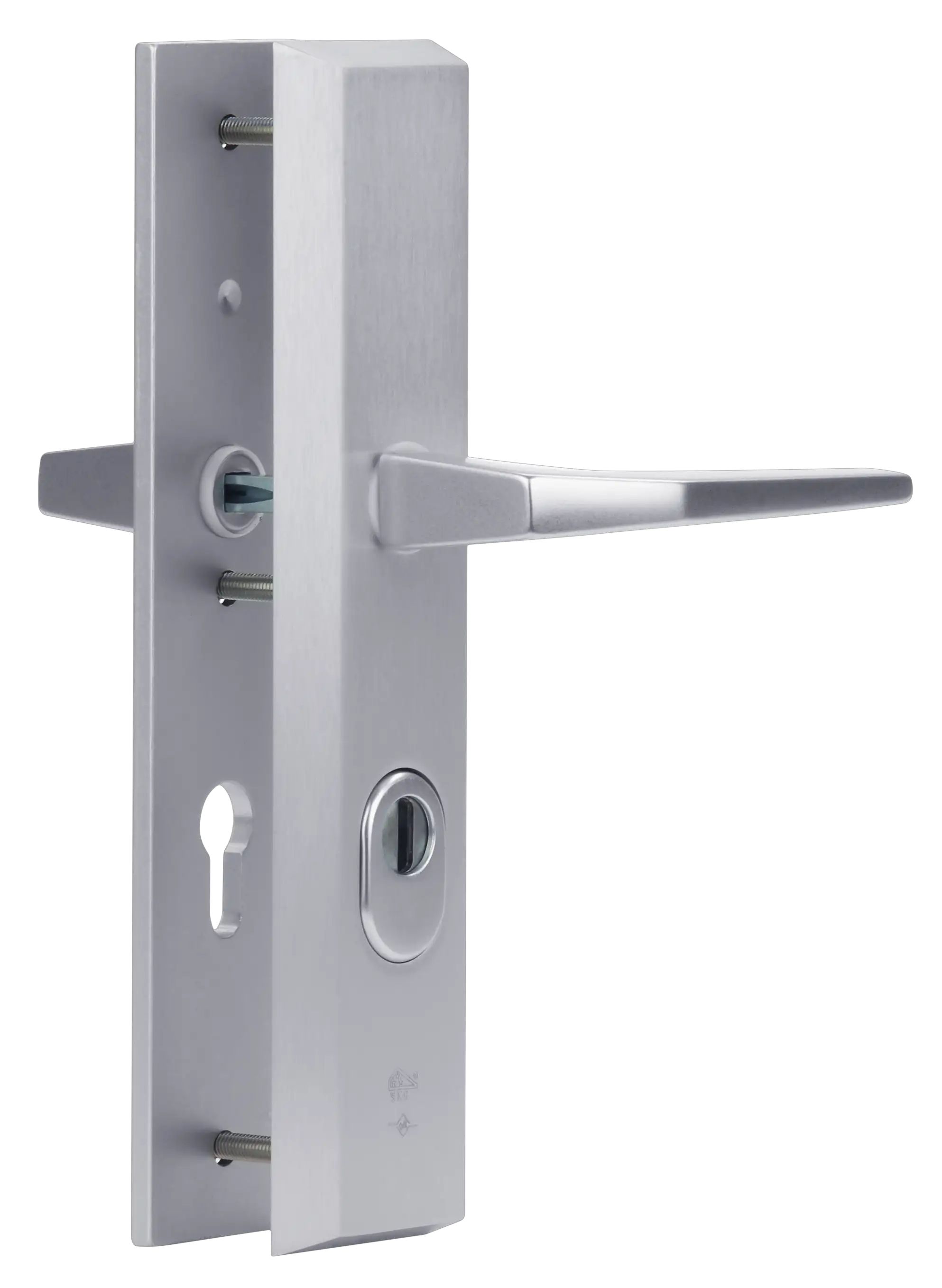 De Dieckmann serie Alpha-XXL is een renovatie veiligheidsgarnituur van massief aluminium volgens de DIN 18257, NEN 5089 met keurmerk SKG***®. Buitenzijde met cilinder-kerntrekbeveiliging, met deurkruk of vaste greep/knop en stalen nokken Ø10 met gehard stalen plaatjes. Binnenzijde met deurkruk gatdeel en zichtbare bevestiging met 3 x M6 bouten incl. 8mm stift.