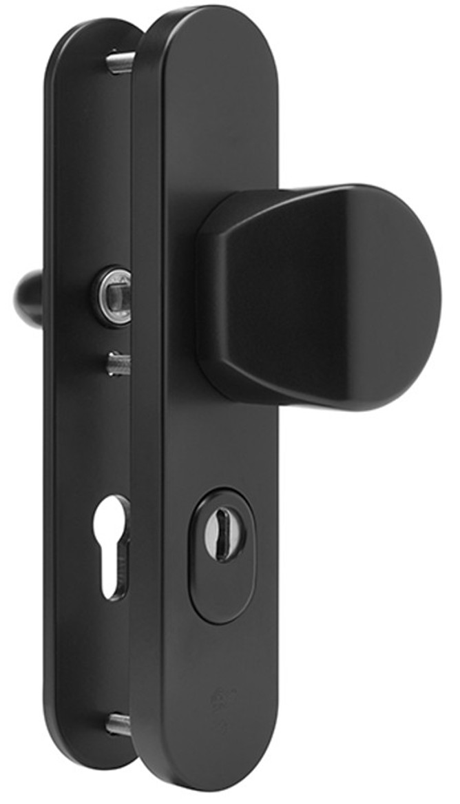De Dieckmann serie Rombus is een veiligheidsgarnituur van massief aluminium volgens de DIN 18257, NEN 5089 met keurmerk SKG***®. Buitenzijde met cilinder-kerntrekbeveiliging, met deurkruk of vaste greep/knop en stalen nokken Ø10 met gehard stalen plaatjes. Binnenzijde met deurkruk gatdeel en zichtbare bevestiging met 3 x M6 bouten incl. 8mm stift.