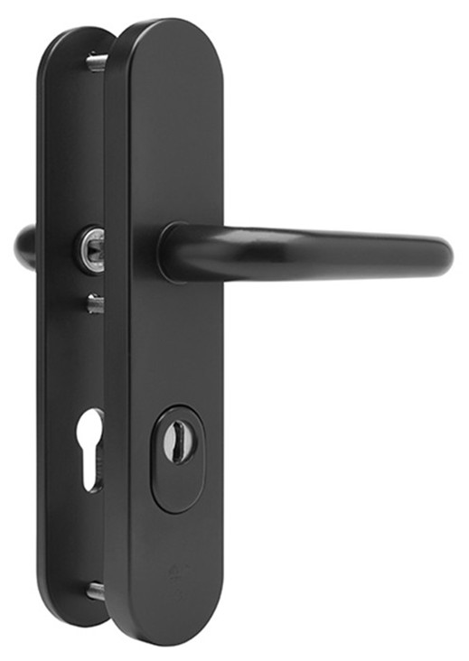 De Dieckmann serie Rombus is een veiligheidsgarnituur van massief aluminium volgens de DIN 18257, NEN 5089 met keurmerk SKG***®. Buitenzijde met cilinder-kerntrekbeveiliging, met deurkruk of vaste greep/knop en stalen nokken Ø10 met gehard stalen plaatjes. Binnenzijde met deurkruk gatdeel en zichtbare bevestiging met 3 x M6 bouten incl. 8mm stift.