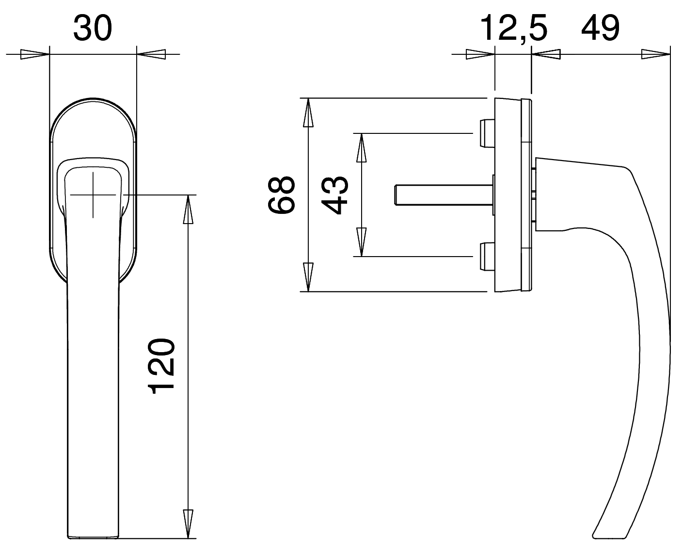 D1002 F1 venstergreep op afgeronde rozet, stift 7x35mm