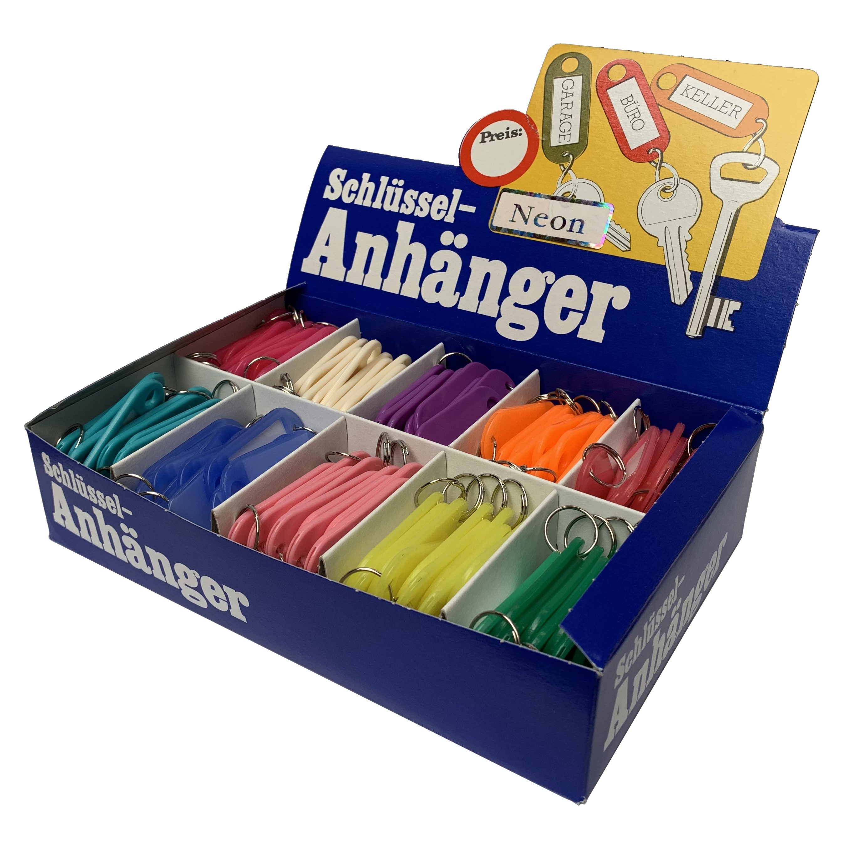 11111 - 200st Sleutellabel neon assorti, met ring