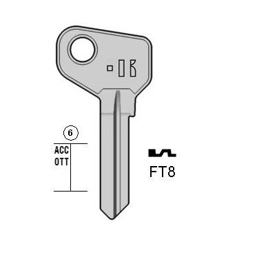Autosleutel messing, FT8, AF7A, IMS-5, 129-1, 816, FA1